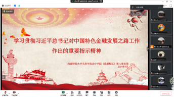 学如弓弩,才如箭镞。为深入学习中国特色金融理论,了解中国金融发展的历史和现状,把握中国金融发展的方向和趋势,走好中国特色金融发展之路,3月25日,新葡萄8883官网AMG第八党支部开展了三月党课学习,本次党课由第八党支部书记苟小清主讲,第八党支部全体党员参加本次会议。 党课主题 苟小清老师主持第八党支部党课学习会议伊始,苟小清围绕“走好中国特色金...