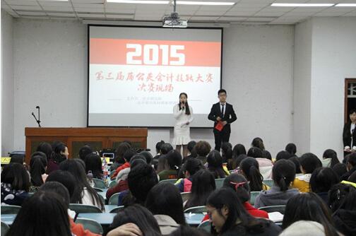 2015年11月25日晚7点30,由西南财经大学天府学院会计研究所承办的“第三届蒲公英会计技能大赛”团队赛决赛于实验楼110如期举行。