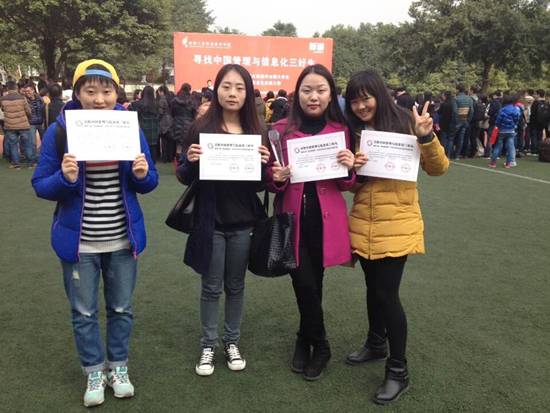 中午13:30,在四川工业职业技术学院的足球场举行颁奖仪式。在颁奖开始前,由用友新道公司的总经理以及四川工业职业技术学院的院长致词,接着就是激动人心的时刻——颁奖。老师和队员们都相当期待这次的结果,整个会场都在等待结果。当主持人宣布“西南财经大学天府学院2队三等奖”和“西南财经大学天府学院1队三等奖”的时候,老师和队员们都感到欣慰,付出的努力总算得到了回报,为学校取得了荣誉。我校八名参赛同学均获得由国家工信部、用友股份有限公司联合认证的“用友ERP工程师”授予资格!