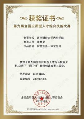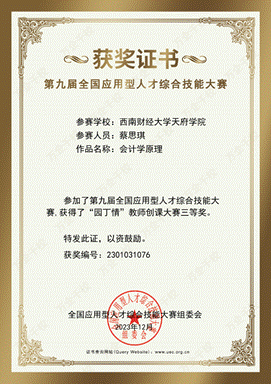 此次大赛旨在贯彻落实《国务院办公厅关于深化产教融合的若干意见》,引导教师以立德树人为根本任务,推进“三全育人”,落实“课程思政”要求。自10月启动以来,学院教师从创新性、实用性和生动性三方面精心设计和准备教学内容。最终,钟男的《财务多岗位综合实训》、史天玥的《商务统计学》课程荣获二等奖,周慧灵的《财务业务一体化应用》、蔡思琪的《会计学原理》、冯婷燕的《财务管理》、汪晶晶的《成本会计》、王叠珏的《会计基础》、韩之璐的《经济法》课程荣获三等奖。