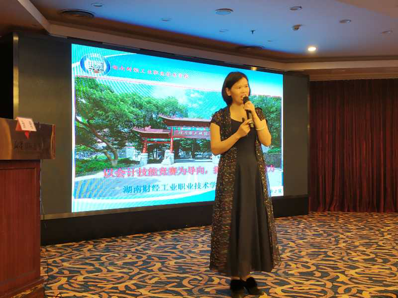 湖南财经工业职院会计系副主任、2019会计技能大赛省赛一等奖团队负责人涂君,就该校如何连续多年取得全国会计技能竞赛一等奖的经验,做了精彩的分享。她从组建竞赛指导教师团队、研究最新竞赛内容、指导学生备战等几个方面进行了详细阐述。