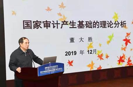 研讨会上,董大胜作了题为“国家审计产生基础的理论分析”的主题报告,报告从五个不同的理论入手对国家审计产生的基础进行了全面深刻的剖析并提出了自己独到的见解。在中国特色社会主义制度下,社会主义民主政治是党的领导、人民当家作主和依法治国的有机统一,审计工作必须为社会主义民主政治建设服务。国家审计是由审计机关依法对公共资金、国有资产、国有资源管理、分配、使用的真实、合法、效益,以及领导干部履行经济责任和自然资源资产及生态保护责任情况所进行的独立监督活动。