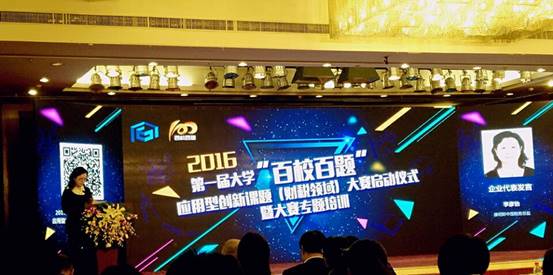 2016第一届大学“百校百题”应用型创新课题(财税领域)大赛是由教育部学校规划建设发展中心(以下简称规建中心)主办的全国高校校企合作“双创”实战演练平台主题竞赛系列赛之一,是一项具有导向性、实践性和创新性的应用课题大赛,是深化高校转型发展,推动应用型人才培养,促进产教研结合、校企合作的重要抓手。本届“百校百题”大赛面向财税领域设立100个企业真实课题,由企业导师、高校导师、优秀学生共同组建课题组。赛程历时一年,分为资格审核、大区赛、全国决赛三个阶段。赛事将通过中央电视台、地方媒体及网络媒体进行跟踪报道,展示高校应用型人才培养成果和师生风采。为了使大赛顺利开展,大赛组委会在北京举办大赛启动仪式暨大赛培训,特邀请北京大学专家,剑桥大学实训教官,财税领域专家、高管等对参赛课题组指导老师进行培训指导。