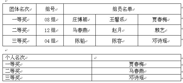 进入决赛的人员共计5组15人,按决赛下半场最后得分评出团体一、二、三等奖共3组,按初赛复赛以及决赛上半场个人一、二、三等奖共3人。