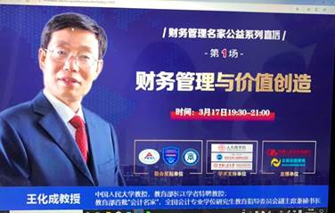 3月17日,在财务管理与价值创造在线主题讲座中,王化成教授结合国情和世界经济运行的基本情况,探讨财务管理与价值创造的核心观点,围绕什么是价值创造?财务用什么模型来度量价值创造?财务管理如何帮助企业实现价值创造?财务管理在价值创造中应考虑哪些环境因素?几个问题进行了分享和互动交流。此次线上讲座,给新葡萄8883官网AMG教师尤其是相关专业的课程组教师,为进一步探索财务管理与价值创造教学实践指出了新方向。