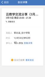 会上每位老师都积极发言,畅谈了两周来云教学的实施经验、遇到的问题以及解决方法。为了更精准地贴近学生的学习行为,郭白涵老师在教学过程中发放了学生问卷,调查了解学生对直播平台的偏好和直播时长的需求。熊玲老师在第一次上课的时候,通过课堂互动的投票环节,了解到大家最赞同老师在上课时间内的“集中学习”与“自主学习”的时间分配,并及时调整了后续课程教学安排。林兰明老师在教学中通过让学生自主寻找教学资料和新涉税政策的差别,培养学生学习的自主学习意识,同时配合在线答疑。课后,将课堂情况与教师助教分享,形成教学共同体,将学校“雅典教学”的理念贯穿到实践中来。