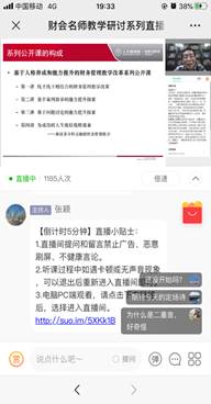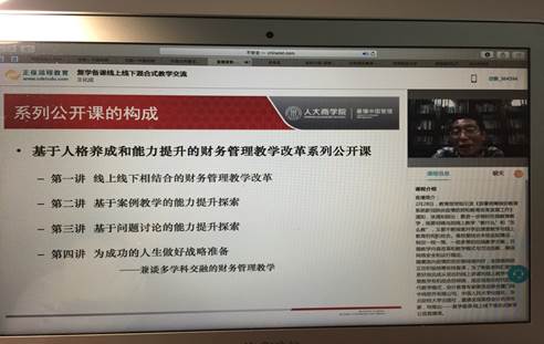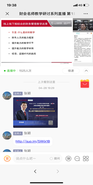 随着国内疫情防控形势持续向好,全国各院校正在积极统筹安排复课。会计教育专家委员会联合厦门网中网软件有限公司、中国人民大学出版社、东北财经大学出版社,邀请全国高校会计名师名家,特推出——复学备课·线上线下混合式教学公益直播课。4月28日晚,财务管理课程组组织课程组内老师认真观看王化成教授所讲的《财务管理》课程的“线上线下混合式教学交流”帮助老师们更快更好地完成从现在的线上讲课向线上教学与课堂教学有机结合的转换,适应信息化时代的现代教学模式。