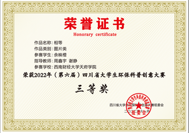 为了切实增强大学生创新精神和实践能力,让大学生树立“绿水青山就是金山银山”理念,提升大学生生态文明意识,在连续举办五届四川省大学生环保科普创意大赛的基础上,经四川省教育厅批准,5月31日特举办四川省大学生环保科普创意大赛。此次大赛由四川省教育厅主办,西华师范大学、四川省环境科学学会、成都大熊猫繁育研究基地承办。11月22日,“第六届四川省大学生环保科普创意大赛”圆满落幕。此次大赛要求以践行“绿水青山就是金山银山”为理念,强化环境教育与科普工作,普及生态环保科学知识、繁荣生态环保科普作品创作,引领社会公众践行生态环保时尚新生活。极大地促进了大学生的学术知识,带动了大学生的积极性。