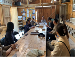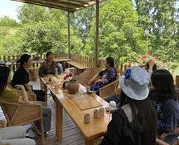 最后,团队与农民女作家、当地书香民宿主人卢树盈进行了深入交流,从当地村民到成都市作家协会会员身份的转变,与卢树盈的交谈中感受到极强的乡土文化的认同感和自豪感,这无疑是文化振兴的最好说明。