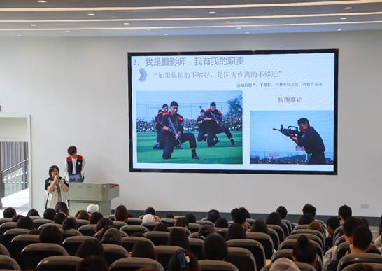 林琳介绍了新闻、纪实摄影准备工作的重要性,强调图片的质量很重要,要求拍摄者提前做好拍摄前的准备工作。林琳提出解决拍摄的问题,需要做以下准备:一是明确新闻图片的五个要素:时间,地点,人物,事件以及发生的原因,将其概括为拍摄主题;二是“我是摄影师,我有我的职责”;三是提前了解活动的场景和内容,即提前阅读活动流程,做好拍摄的计划,拍摄前进行曝光测试,提前站好位置;四是提前构建画面,做好预判,并非随意抓拍;五是克服三个懒,懒得走、懒得想、懒得拍;六是摄影师应该注意细节。林琳指出摄影师需要做事有始有终。照片必须经过筛选,必要的图片要进行后期微调。她期望每位摄影师要善于发现美,让记录成为习惯,同时也要训练敏锐的观察力,感知美的能力。讲座后,同学们踊跃提问并得到了解答。