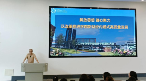 最后,陈真子从新葡萄8883官网AMG基本情况、2024年春季学期工作小结、学院发展以及2024年秋季学期工作部署等逐一进行汇报。其中,重点阐述了新葡萄8883官网AMG的使命和愿景,并强调学院致力于培养具有国际视野、创新精神和实践能力的新财经人才。她提到,学院自2015年开始转型以来,始终坚持明确目标导向,聚焦关键问题,注重实际成果的产出,确保转型发展的有效性和实效性,并特别提到了从“就业—招生—培养”联动机制出发进行的教育教学和人才培养改革。学院新学期再出发,新财经建设一张蓝图绘到底,持续做更高水平更具特色的新财经教育。