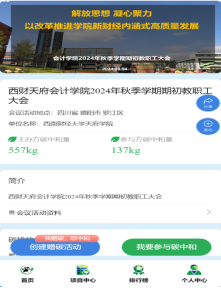 会议伊始,陈真子针对近期川渝地区经历的持续高温酷暑天气谈到,极端天气事件频发已成为不可忽视的现实,积极响应国家“碳中和、碳达峰”的战略目标,不仅关乎环境保护,也是推动经济结构转型升级、实现可持续发展的必由之路。她提到,本次学院期初教职工大会在“点点”碳中和平台开展会议碳中和活动,旨在构建“人人关注、人人参与、人人共享”的城市绿色低碳生活圈,倡议大家通过该平台践行绿色低碳的生产生活方式,通过购买碳信用来中和产生的碳排放,共同构建绿色、低碳、和谐的社会环境。