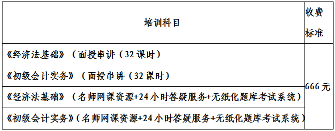 培训科目(两科联报):《经济法基础》、《初级会计实务》