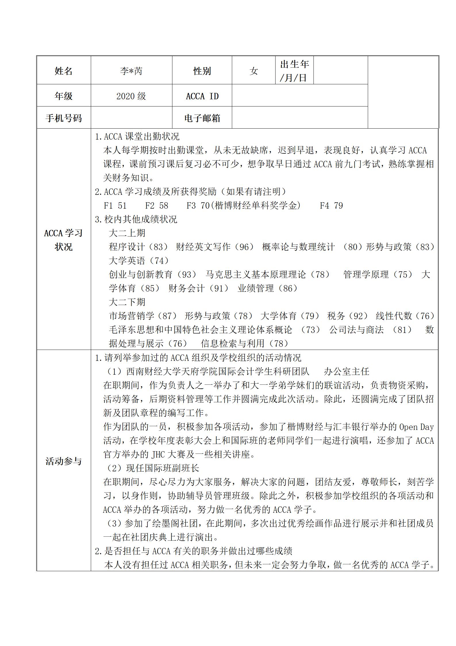 附件2:2022年度ACCA优秀学员推荐表--李*芮
