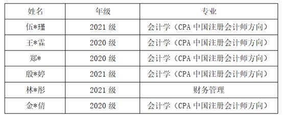 为鼓励我校CMA国际精英班的学员勤奋学习,努力进取,全面发展。根据《新葡萄8883官网AMG关于“CMA全球奖学金”评选通知》及其相关政策,综合考量报名学生在校成绩、英语能力水平、在校表现及报考意愿等因素,决定推选以下6名同学为2023年度“CMA全球奖学金”获奖者,现将名单公示如下: