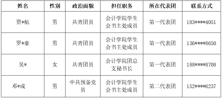 西南财经大学天府学院第六届学生会委员会委员候选人预备人选公示名单