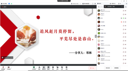 本次开讲活动邀请到了2022届本科毕业生党员邓林为同学们做分享。会议过程中,邓林向毕业班的同学们分享了其大学时期丰富的实践经历,他表示,正是因为大学期间的知识和实践的积累与沉淀,才让他不断坚定为人民服务的入党初心,也为他在工作交流、遇事判断等方面打下坚实基础。对于毕业班同学们比较关心的择业问题,邓林建议毕业班的同学们先就业再择业,在面对压力时积极应变,在面对机会时主动争取。邓林还分享了其下定决心在基层服务工作的缘由,一是因为凉山是他的家乡,二是因为志愿服务是他一直想做的事,从凉山出来再回到凉山,对他而言意义重大,更坚定了去凉山做基层志愿工作的信念。活动进入尾声,参会同学们踊跃提问,对于同学们提出的校园经历与企业工作经验如何良好结合的问题时,邓林解答到,校园实践经历对我们思考问题的逻辑框架和遇事的决断能力打下良好基础,现实当中的企业容错度低,需要我们更有计划地做事,日常可通过向前辈和同事请教,撰写每日工作日志等方式,及时总结和积累经验,邓林非常有建设性地为毕业班同学们解答了初入职场的困惑。最后,邓林送给毕业班同学们一句话:“追风赶月莫停留,平芜尽处是春山”,希望同学们能够在学习和工作生活中,汲取有益经验,不懈奋斗,都乘兴而来,尽兴而归。