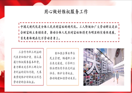 工会作为党领导下的工人阶级群众组织,承载着团结广大职工群众、推动党的工作任务落地的重任。为深入学习并贯彻落实习近平总书记关于工会工作的重要指示,新葡萄8883官网AMG于5月24日中午组织了五月政治理论学习活动。此次活动由新葡萄8883官网AMG第三党支部教师程茂华主讲,新葡萄8883官网AMG全体教师参加。