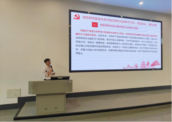 6月1日上午9时,马克思主义学院王代静老师以《推进中国式现代化的实践路径》为主题进行专题讲座,深入解读了中国式现代化是中国共产党领导的社会主义现代化,探讨了中国式现代化的中国特色及其本质要求和重大原则。王代静同志的理论讲解逻辑清晰,环环相扣,通俗易懂,为学员们奠定了坚实的理论基础,同时王代静老师也号召全体学员把青春奋斗融入为党和人民服务的事业中去,增强做中国人的志气、骨气、底气,不负时代,不负韶华。
