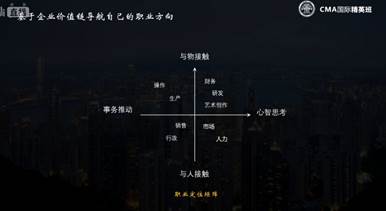现代世界包罗万象,每个人都处在信息海洋之中,只有拥有地图和导航仪的人才不会迷失方向。Steven先生抛出了“两个地图和一个导航仪”的观点。两个地图是:行业和职业地图。行业地图说的是有新技术、新需求、新商业模式的行业更具备竞争潜力,未来的发展也会蒸蒸日;职业地图说的是通过企业价值链明确职业位置,给自己大概的选择方向。那么导航仪就是自我分析,通过对自己的深入了解,精确定位。