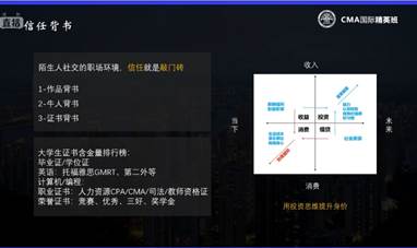 如何用科学的方式明确人生方向?如何在适合的岗位上发光发热呢?如何查漏补缺提高自己的短板呢?追梦的道路总是充满艰辛和曲折,明确方向和掌握方法必不可少。我们邀请到了CMA国际精英班教师、香港大学硕士、某咨询公司联合创始人兼CEO Steven先生为我们讲述这一话题。本次讲座参与同学1000人左右,通过线上直播的方式开展。