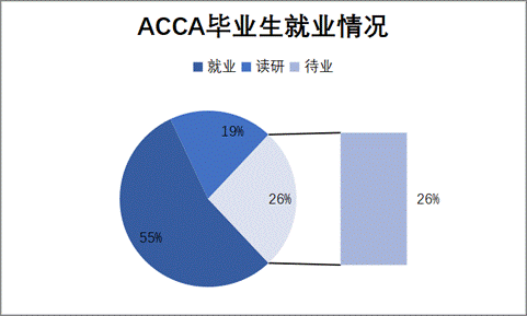 从图中可以看出,ACCA专业毕业生大部分学生选择就业或读研,少部分学生处于待业状态,据调查了解,待业的同学主要有三方面原因:复习读研、辞职再就业、专心考试。