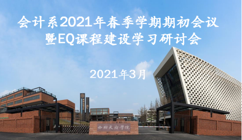 会计系于2021年3月30日组织召开2021年春季学期第一次会议暨EQ课程建设学习研讨会。会议主要就本学期相关工作安排以及EQ平台课程建设问题进行了专项讨论,此次会议由会计系主任许静、副主任李舟主持,会计系全体教师参会。会议截图?会议首先就《新葡萄8883官网AMG2021年工作要点》进行解读,李舟指出,本年度新葡萄8883官网AMG将全面落实“课程思政”...