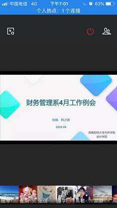 为了加强队伍建设,进一步推动财管理系后续各项事务顺利高效开展,4月14日,财务管理系利用企业微信APP召开了4月工作例会。会议由本系主任张娟老师主持,全体老师参加了此次会议。会议内容包括学习教育部高等教育司2020年度工作要点与学校2020年度工作要点、2020年度教学大赛动员与组织、系里近期工作总结与安排等三个方面。会议开始,在张娟老师带领下...