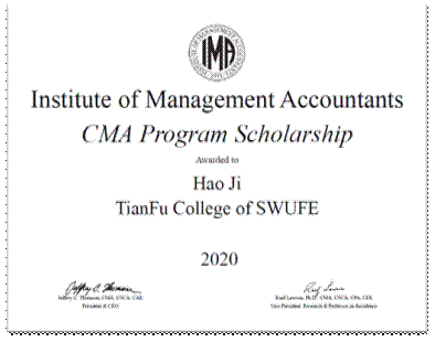 近日,由美国管理会计师协会(IMA)设立的CMA奖学金2020年度获奖名单揭晓,新葡萄8883官网AMGCMA国际精英班的曾心、雷节、彭心悦同学以及财务管理专业的戢浩同学荣获本年度该项目奖学金。CMA奖学金项目主要针对教育部认可院校的财会或管理类专业的本科、研究生开放,推荐参加的学员必须学业成绩优秀,并有志于投身于管理会计行业。该奖学金免去获奖同学三年内参...